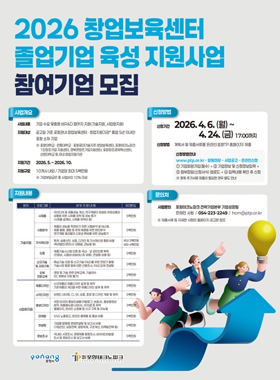 °æ»óºÏµµ Æ÷Ç×Å×Å©³ëÆÄÅ©°¡ â¾÷º¸À°¼¾ÅÍ Á¹¾÷±â¾÷ÀÇ Áö¼Ó °¡´ÉÇÑ ¼ºÀåÀ» µ½±â À§ÇÑ 2026³â â¾÷º¸À°¼¾ÅÍ Á¹¾÷±â¾÷ À°¼º Áö¿ø»ç¾÷ Âü¿©±â¾÷ ¸ðÁý¿¡ ³ª¼¹´Ù.