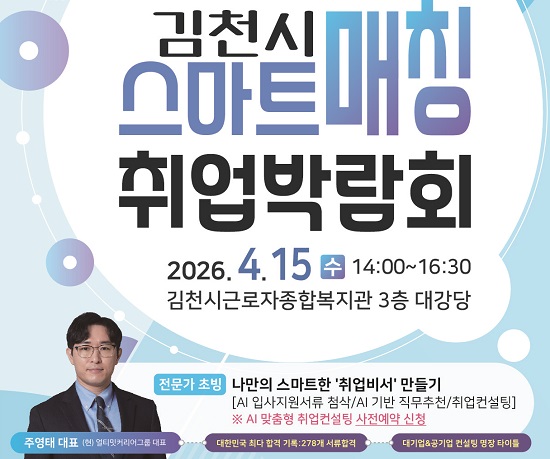 ¡®±èõ½Ã ÀÏÀÚ¸® ½º¸¶Æ®¸ÅĪ Ãë¾÷¹Ú¶÷ȸ¡¯´Â ºÐ±âº° Á¤±â °³ÃÖµÅ, ±¸ÀÎ ±â¾÷°ú ±¸Á÷ÀÚ °£ÀÇ ½ÇÁúÀûÀÎ ÀÏÀÚ¸® ¸ÅĪÀ» ÃËÁøÇϰí, û³âµéÀÇ Ãë¾÷ Áغñ¸¦ Áö¿øÇÏ´Â À¯ÀÍÇÑ ±âȸ·Î Á¦°øµÉ ¿¹Á¤ÀÌ´Ù.