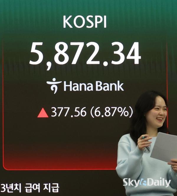 ¡ã ÄÚ½ºÇǰ¡ ¹Ì±¹°ú À̶õÀÇ 2ÁÖ ÈÞÀü ÇÕÀÇ·Î Áßµ¿¹ß ÁöÁ¤ÇÐÀû ¸®½ºÅ©°¡ ¿ÏÈ­µÇ¸é¼­ ¿Ü±¹Àΰú ±â°üÀÇ ¸Å¼ö¼¼¿¡ ÈûÀÔ¾î 6.87% ±Þµî ¸¶°¨ÇÑ 8ÀÏ ¼­¿ï Áß±¸ ÇϳªÀºÇà º»Á¡ µô¸µ·ë ÇöȲÆÇ¿¡ ÄÚ½ºÇÇ µîÀÌ Ç¥½ÃµÇ°í ÀÖ´Ù. Àü °Å·¡ÀÏ ´ëºñ 377.56Æ÷ÀÎÆ®(6.87%) ¿À¸¥ 5872.34¿¡ °Å·¡¸¦ ¸¶ÃÆ´Ù. ÄÚ½º´Úµµ 53.12Æ÷ÀÎÆ®(5.12%) »ó½ÂÇÑ 1089.85·Î ÀåÀ» ¸¶°¨Çß´Ù. ÄÚ½ºÇÇ ½ÃÀå ½Ã°¡ÃÑ¾× »óÀ§ 10°³ Á¾¸ñ Áß »ï¼ºÀüÀÚ(7.12%)¿Í SKÇÏÀ̴нº(12.77%)µµ »ó½Â ¸¶°¨Çß´Ù. ¹Ú¹Ì³ª ±âÀÚ ¨Ï½ºÄ«À̵¥Àϸ®