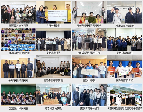 À̹ø ¼±¾ð¿¡´Â ±¤¸í½ÃÀÚ¿øºÀ»ç¼¾ÅÍ, ±¤¸í¹®ÈÀç´Ü, ±¤¸í½Ãû¼Ò³âÀç´Ü, ±¤¸í½ÃüÀ°È¸, ±¤¸íÁ¾ÇÕ»çȸº¹Áö°ü, ö»êÁ¾ÇÕ»çȸº¹Áö°ü, ÇϾÈÁ¾ÇÕ»çȸº¹Áö°ü, ±¤¸íÀå¾ÖÀÎÁ¾ÇÕº¹Áö°ü, Çѱ¹¸¶»çȸ ±¤¸íÁö»ç, ±¹¹ÎüÀ°ÁøÈï°ø´Ü °æ·û°æÁ¤ÃѰýº»ºÎ, ´ëÇÑÀû½ÊÀÚ»ç ±¤¸í½ÃÁöºÎ, ±¤¸í ¾Æºê´ºÇÁ¶û, ±â¾Æ ¿ÀÅä·£µå ±¤¸í, ÀÌÄÉ¾Æ ±¤¸íÁ¡, NH³óÇùÀºÇà ±¤¸í½ÃÁöºÎ, SK ½´°¡±Û¶óÀÌ´õÁî µî ÃÑ 16°³ ±â°üÀÌ Âü¿©Çß´Ù.
