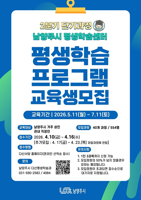 ¡ã³²¾çÁֽà Æò»ýÇнÀ¼¾ÅͰ¡ 2ºÐ±â 8ÁÖ ´Ü±â ±³À°°úÁ¤ ±³À°»ý 554¸íÀ» ¸ðÁýÇÑ´Ù. ³²¾çÁÖ½Ã