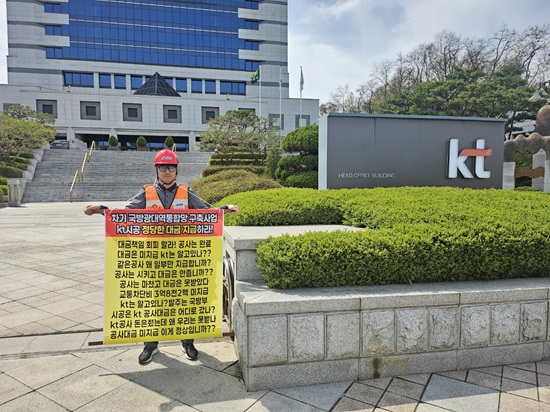 ¡ã±èÁ¾¿í Áø¿ì»ê¾÷¾ÈÀü ´ëÇ¥°¡ KT º»»ç Á¤¹® ¾Õ¿¡¼­ 1ÀÎ ½ÃÀ§¸¦ ÁøÇàÇϰí ÀÖ´Ù. ¨Ï½ºÄ«À̵¥Àϸ®