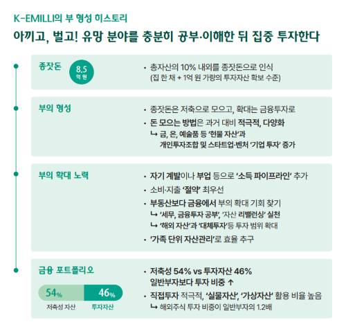 ºÎÀÇ Àã´ë¸¦ ÀÚ»ê ±Ô¸ð°¡ ¾Æ´Ñ Ã¥ÀÓ ÀÇ½Ä µî °¡Ä¡ ÃæÁ·¿¡ µÎ´Â °Íµµ K-¿¡¹Ð¸®ÀÇ Æ¯ÀÌÁ¡À̾ú´Ù. ºÎ¸¦ ´Ü¼ø °ú½Ã ¼ö´ÜÀ¸·Î º¸Áö ¾Ê°í ½Ã°£Àû ÀÚÀ¯¿¡ ¿ªÁ¡À» µÎ¸ç Á¤±âÀûÀÎ ±âºÎ¸¦ ½ÇõÇϰí Àֱ⵵ Çß´Ù. À̵éÀÇ ±âºÎÀ²Àº 62%·Î, ±ÝÀ¶ ÀÚ»ê 10¾ï ÀÌ»óÀ» º¸À¯ÇÑ ±âÁ¸ ºÎÀÚ Áý´ÜÀÇ 58%º¸´Ù ´Ù¼Ò ³ô¾Ò´Ù.