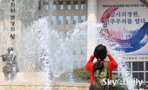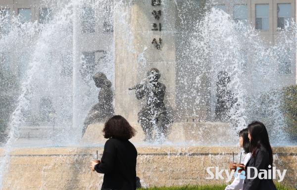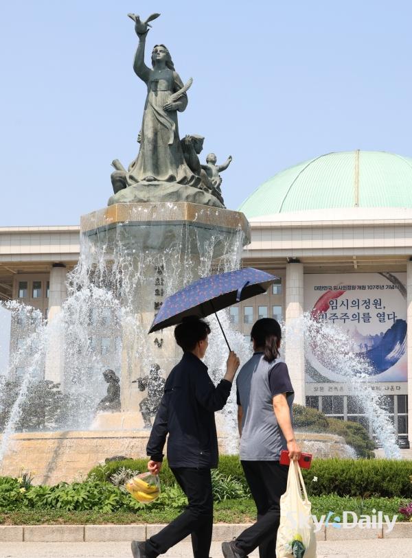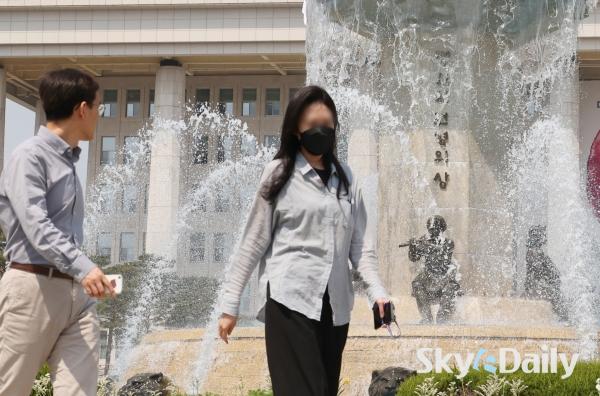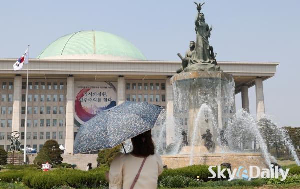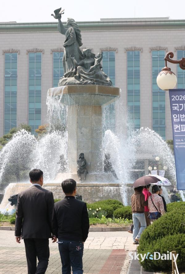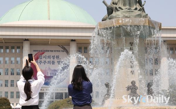 ¡ã ¼¿ï ³· ÃÖ°í±â¿ÂÀÌ 26µµ±îÁö ¿À¸£´Â µî ÃÊ¿©¸§ °°Àº ³¯¾¾°¡ À̾îÁö°í ÀÖ´Â 15ÀÏ ¿ÀÈÄ ¼¿ï ¿©Àǵµ ±¹È¸ÀÇ»ç´ç ºÐ¼ö´ë¿¡¼ ½Ã¿øÇÑ ¹°ÁٱⰡ »Õ¾î ³ª¿À°í ÀÖ´Ù. ³»·ú Áß½ÉÀ¸·Î´Â ³·°ú ¹ãÀÇ ±â¿ÂÂ÷°¡ 15µµ ¾ÈÆÆÀ¸·Î Å« Àϱ³Â÷¸¦ º¸À̱⠶§¹®¿¡ °Ç°°ü¸®¿¡ À¯ÀÇÇØ¾ß ÇÒ Çʿ䰡 ÀÖ´Ù. ¹Ú¹Ì³ª ±âÀÚ ¨Ï½ºÄ«À̵¥Àϸ®