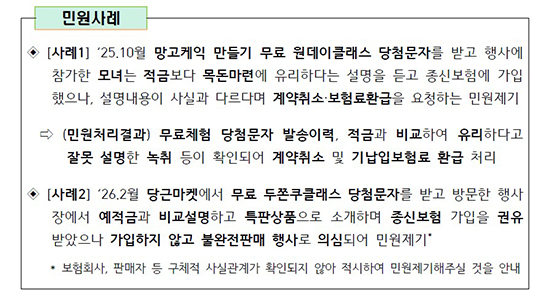 ±ÝÀ¶°¨µ¶¿øÀÌ Á¾½Åº¸ÇèÀ» ÀúÃà»óǰó·³ ¿ÀÀÎÇÏ°Ô ¸¸µå´Â ºÒ¿ÏÀüÆÇ¸Å°¡ ¹Ýº¹µÇ°í ÀÖ´Ù¸ç ¼ÒºñÀÚ ÁÖÀǸ¦ ´çºÎÇß´Ù. ¿øµ¥ÀÌŬ·¡½º, ¹Ú¶÷ȸ, »ç³»±³À° µî ÀÏ»óÀûÀÎ Á¢Á¡¿¡¼ º¸Çè °¡ÀÔÀÌ ÀÌ·ïÁö¸é¼, »óǰÀÇ º»ÁúÀ» Á¦´ë·Î ÀÎÁöÇÏÁö ¸øÇÑ Ã¤ °è¾àÀ» ü°áÇÏ´Â »ç·Ê°¡ À̾îÁö°í ÀÖ´Ù´Â ÁöÀûÀÌ´Ù.