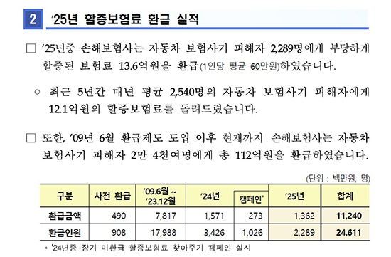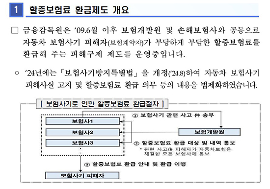 ÀÚµ¿Â÷ º¸Çè»ç±â ÇÒÁõº¸Çè·á ȯ±ÞÁ¦µµ´Â º¸Çè»ç±â·Î »ç°í ³»¿ëÀÌ ¿Ö°îµÇ¸é¼ º¸Çè°è¾àÀÚ°¡ ¿ø·¡ ³»Áö ¾Ê¾Æµµ µÉ º¸Çè·á¸¦ ´õ ºÎ´ãÇÑ °æ¿ì À̸¦ µ¹·ÁÁÖ´Â ÀåÄ¡´Ù. ±ÝÀ¶´ç±¹Àº 2009³â 6¿ùºÎÅÍ º¸Çè°³¹ß¿ø, ¼ÕÇØº¸Çè»ç¿Í ÇÔ²² ÀÌ Á¦µµ¸¦ ¿î¿µÇØ ¿Ô´Ù. Áö³ÇØ 8¿ù¿¡´Â º¸Çè»ç±â¹æÁöƯº°¹ýÀ» °íÃÄ ÀÚµ¿Â÷ º¸Çè»ç±â ÇÇÇØ»ç½Ç °íÁö¿Í ÇÒÁõº¸Çè·á ȯ±Þ Àǹ«¸¦ ¹ýÁ¦ÈÇß´Ù.