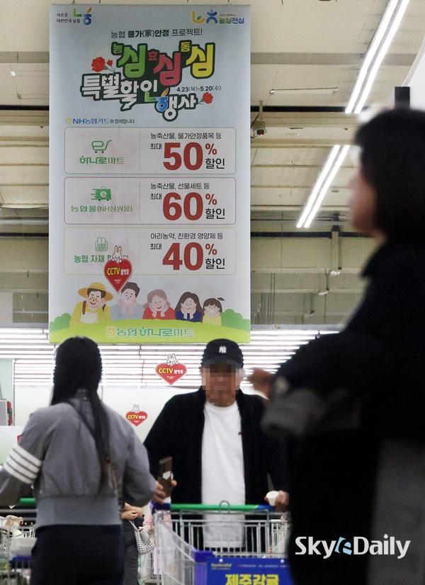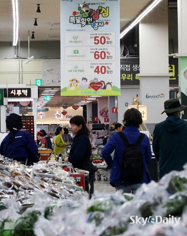 ¡ã °¡Á¤ÀÇ ´ÞÀ» ¾ÕµÐ 23ÀÏ ¿ÀÈÄ, ¼­¿ï ¼­Ãʱ¸ ³óÇùÇϳª·Î¸¶Æ® ¾çÀçÁ¡À» ãÀº ½Ã¹ÎµéÀÌ ÀåÀ» º¸°í ÀÖ´Ù. ³óÇùÀº °í¹°°¡ ½Ã´ë ¹Î»ý ¹°°¡ ºÎ´ãÀ» ³·Ãß°í ³»¼ö °æ±â¿¡ Ȱ·ÂÀ» ºÒ¾î³Ö±â À§ÇØ ÃÑ 1,142¾ï ¿ø ±Ô¸ðÀÇ Àç¿øÀ» ÅõÀÔ, ³»´Þ 20ÀϱîÁö ¡®³ó½É! È¿½É! µ¿½É! Ưº°ÇÒÀÎÇà»ç¡¯¸¦ ÁøÇàÇÑ´Ù. À̹ø Çà»ç ±â°£ Àü±¹ Çϳª·Î¸¶Æ®¿Í NH½Ì½Ì¸ô¿¡¼­´Â Á¦Ã¶ °úÀϰú ÇÑ¿ì, »ýÇÊǰ µîÀ» ÃÖ´ë 50~60% ÇÒÀÎµÈ °¡°Ý¿¡ ¸¸³ªº¼ ¼ö ÀÖ´Ù. ÀÌÁ¾¿ø ±âÀÚ ¨Ï½ºÄ«À̵¥Àϸ®