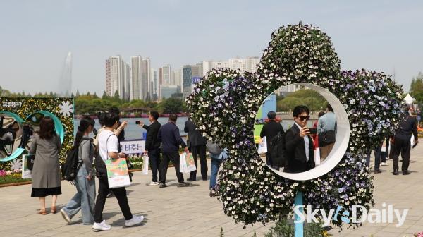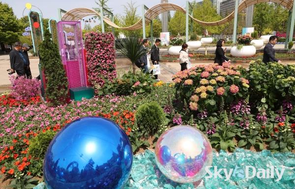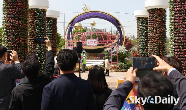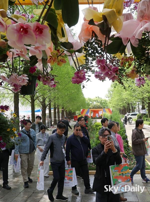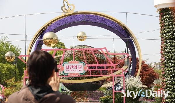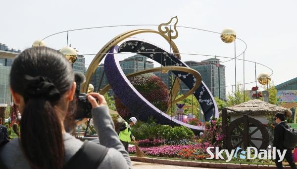 ¡ã 23ÀÏ ¿ÀÀü Á¦18ȸ °í¾ç±¹Á¦²É¹Ú¶÷ȸ ÇÁ·¹½ºµ¥À̰¡ ÀÏ»êÈ£¼ö°ø¿ø¿¡¼­ ¿­¸° °¡¿îµ¥ ¿ÃÇØ ¾ß¿ÜÀü½ÃÀÇ ÇÙ½É ÁÖÁ¦ ±¤ÀåÀÎ ¡®½Ã°£¿©ÇàÀÚÀÇ Á¤¿ø¡¯ ¾Õ¿¡¼­ Âü°ü°´µéÀÌ »çÁøÀ» Âï°í ÀÖ´Ù. 24ÀϺÎÅÍ 5¿ù10ÀϱîÁö ÃÑ 17Àϰ£ °³ÃÖÇÏ´Â À̹ø Çà»ç¿¡¼­´Â ¡®²É, ½Ã°£À» ¹°µéÀÌ´Ù¡¯ ¶ó´Â ÁÖÁ¦·Î È­·ÁÇÑ ¾ß¿ÜÀü½Ã, ½Ç³» Ưº°Àü½Ã, °ø¿¬ ¹× À̺¥Æ®, Çöó¿ö¸¶ÄÏ µîÀ¸·Î 25¸¸§³ ±Ô¸ð¸¦ °¡µæ ä¿î´Ù. ¹Ú¹Ì³ª ±âÀÚ ¨Ï½ºÄ«À̵¥Àϸ®