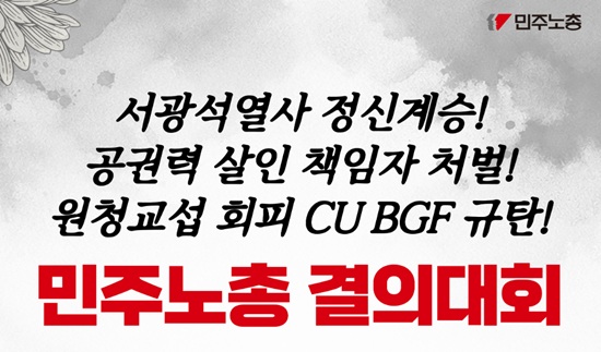 ¹ÎÁÖ³ëÃÑÀº ¡°¼±¤¼® ¿»çÀÇ Á×À½Àº ¿øÃ» ±³¼·À» ȸÇÇÇÏ°í ³ëµ¿Á¶ÇÕÀ» ź¾ÐÇÑ BGF¿Í À̸¦ ºñÈ£ÇÑ °æÂû °ø±Ç·ÂÀÇ »ìÀÎÀÌ´Ù¡±¶ó¸ç ¡°¹ÎÁÖ³ëÃÑÀº ¼±¤¼® ¿»çÀÇ Á¤½ÅÀ» °è½ÂÇÏ°í ¿ø û±³¼· ÀïÃ븦 À§ÇØ ÃÑ·Â ÅõÀïÇϰڴ١±°í ¹àÇû´Ù.