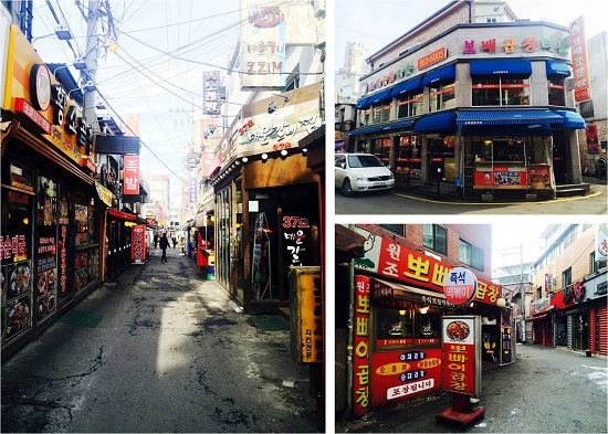 ÃÖ±Ù¿¡´Â °öâÁý »Ó¸¸ ¾Æ´Ï¶ó ´Ù¾çÇÑ Á¡Æ÷µéÀÌ ÀÔÁ¡ÇÏ¸é¼ »ö±òÀº ´Ù¼Ò ¹Ù·¡Áø ´À³¦ÀÌ´Ù. ´ë·Îº¯°ú À̸鵵·Î¿¡ ÁÖÁ¡, ÈÀåǰÁ¡ µîÀÌ µé¾î¼¹°í µ¹´Ù¸® °öâ°ñ¸ñ ¸ÞÀÎ °Å¸®¿¡µµ °öâ ¿Ü¿¡ ġŲ, ´ß°¥ºñ, µî°¥ºñ, «»Í µîÀ» ÁÖ¸Þ´º·Î ÇÏ´Â À½½ÄÁ¡µéÀÌ µÕÁö¸¦ Ʋ¾ú´Ù.