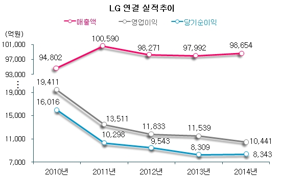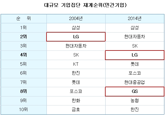 Ãâ¹ü 10ÁÖ³âÀ» ¸ÂÀº GS´Â ¸ÅÃâ°ú ÀÚ»ê±Ô¸ð°¡ ¾à ¼¼ ¹è °¡±îÀÌ ¶Ù¾î¿Ã¶ó Àç°è 8À§¿¡ À̸§À» ¿Ã·ÈÁö¸¸ ½ÇÀûÀº ¿ÜÇü¿¡ ºñÇØ ÀúÁ¶ÇÑ »óÅ´Ù. ¹Ý¸é LG±×·ìÀº GS¿ÍÀÇ °áº° ÀÌÈÄ ¿©ÀüÈ÷ Àç°è »óÀ§¸¦ À¯ÁöÇÏ´Â »óŸ¦ º¸À̰í ÀÖ¾î Çã ȸÀå°ú LG ±¸º»¹« ȸÀåÀÇ ¸í¾ÏÀÌ ¾ù°¥¸®´Â »óȲÀÌ´Ù.