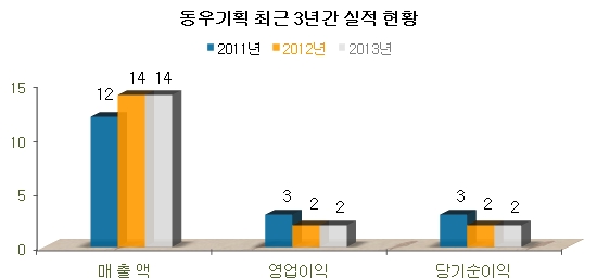 ÀÌ·± µ¿¿ì±âȹÀº ¸Å ³â ÀÏÁ¤ ¼öÁØ ÀÌ»óÀÇ ½ÇÀûÀ» ²ÙÁØÈ÷ ´Þ¼ºÇß´Ù. Áö³ 3³â°£ÀÇ ½ÇÀû¸¸ º¸´õ¶óµµ ¡â2011³â ¸ÅÃâ¾× 12¾ï¿ø, ¿µ¾÷ÀÌÀÍ 3¾ï¿ø ´ç±â¼øÀÌÀÍ 3¾ï¿ø ¡â2012³â ¸ÅÃâ¾× 14¾ï¿ø, ¿µ¾÷ÀÌÀÍ 2¾ï¿ø, ´ç±â¼øÀÌÀÍ 2¾ï¿ø ¡â2013³â ¸ÅÃâ¾× 14¾ï¿ø, ¿µ¾÷ÀÌÀÍ 2¾ï¿ø, ´ç±â¼øÀÌÀÍ 2¾ï¿ø µîÀ» °¢°¢ ³ªÅ¸³Â´Ù.