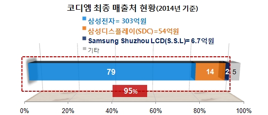 ÃÖ±Ù ¸î³â°£ »ï¼ºÀüÀÚ ÀÚȸ»ç ¼¼¸Þ½º¿¡ ´ëÇÑ ÄÚµð¿¥ÀÇ ¸ÅÃâ ÀÇÁ¸µµ´Â ¡â2012³â 73.8% ¡â2013³â 79.4% ¡â2014³â 91.2% µîÀ» ³ªÅ¸³Â´Ù. ÁÖ ¸ÅÃâó´Â »ï¼ºÀüÀÚ ÀÚȸ»çÀÎ ¼¼¸Þ½ºÀ̸ç ÃÖÁ¾ ¼ö¿äó´Â »ï¼ºÀüÀÚ ¹× »ï¼ºµð½ºÇ÷¹ÀÌ µîÀ¸·Î »ý»ê¼³ºñ ³³Ç°¿¡¼ ¸ÅÃâÀÌ ÁÖ·Î ¹ß»ýÇÑ´Ù. ÀÌ¿¡ Äڵ𿥵µ °¨»çº¸°í¼¸¦ ÅëÇØ ¡°¼¼¸Þ½º´Â ´ç»çÀÇ À繫¼º°ú¿¡ Áß´ëÇÑ ¿µÇâÀ» °®°í ÀÖ´Ù¡±°í ¹àÈ÷°í ÀÖ´Ù.