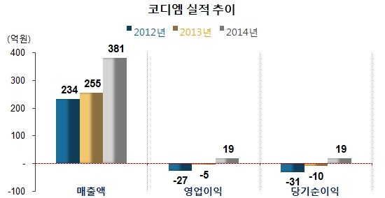 ±Ý°¨¿ø °ø½Ã¿¡ µû¸£¸é ¼¼¸Þ½ºÀÇ ¸ÅÃâ¾×ÀÌ 2011³â 7032¾ï¿ø¿¡¼ 2012³â 5883¾ï¿øÀ¸·Î °¨¼ÒÇÏÀÚ ÄÚµð¿¥ÀÇ ¸ÅÃâ¾×µµ 303¾ï¿ø¿¡¼ 234¾ï¿øÀ¸·Î °¨¼ÒÇß´Ù. ¶Ç ¼¼¸Þ½ºÀÇ ¸ÅÃâ¾×ÀÌ 2013³â 8973¾ï¿ø¿¡¼ 2014³â 9114¾ï¿øÀ¸·Î ´Ã¾î³ªÀÚ Äڵ𿥵µ 255¾ï¿ø¿¡¼ 381¾ï¿øÀ¸·Î ¸ÅÃâÀÌ ¿Ã¶ú´Ù.