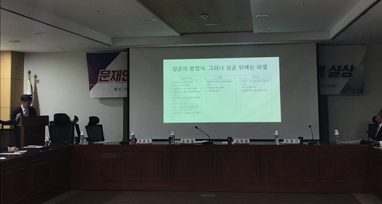 Áö³­ 22ÀÏ ±¹È¸¿¡¼­ ÀÚÀ¯Çѱ¹´ç ½ÉÀçö ÀÇ¿ø ÁÖÃÖ¡¤ÀÚÀ¯¹ÎÁÖÁÖÀÇ¿Í ½ÃÀå°æÁ¦Æ÷·³ ÁÖ°üÀ¸·Î ¿­¸° Á¤Ã¥Åä·Ðȸ ¡®¹®ÀçÀÎ Á¤ºÎÀÇ ¹Ý½ÃÀå »çȸÁÖÀÇÇü °æÁ¦Á¤Ã¥ ½Ç»ó¡¯ÀÌ °³ÃֵƴÙ. ¹ßÁ¦¸¦ ¸ÃÀº ¾çÁظ𠿬¼¼´ë °æÁ¦Çаú ±³¼ö´Â ÇöÀçÀÇ °æÁ¦À§±â°¡ ¹®ÀçÀÎÁ¤ºÎÀÇ ¼ÒµæÁÖµµ¼ºÀå¿¡ ±â¹ÝÇÑ °æÁ¦Á¤Ã¥¿¡¼­ ºñ·ÔµÆ´Ù°í Áø´ÜÇϸç ÀÌ Á¤Ã¥À» Áï°¢ Æó±âÇØ¾ß ÇÑ´Ù°í ÁÖÀåÇß´Ù.