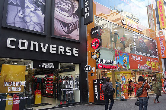 ½Å¹ß¸ÖƼ¼óÀ̶õ °°Àº Á¾·ù, ´Ù¾çÇÑ »óÇ¥ÀÇ Á¦Ç°µéÀ» Çѱºµ¥ ¸ð¾Æ ÆÄ´Â ½Å¹ß ¸ÅÀåÀÌ´Ù. ¸íµ¿ÀÇ ½Å¹ß¸ÖƼ¼ó ½ÃÀåÀ» ÁÖµµÇÏ´Â ¸ÅÀå¿¡´Â ¡®ABC-MART¡¯, ¡®·¹½º¸ð¾Æ¡¯, ¡®Æú´õ¡¯, ¡®½´¸¶Ä¿¡¯, ¡®Ç²¶ôÄ¿¡¯ µîÀÌ ÀÖ´Ù.