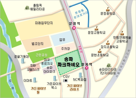 º¹ÇÕ´ÜÁö ¡®¼ÛÆÄ ÆÄÅ©ÇϺñ¿À¡¯°¡ µé¾î¼³ ¼ÛÆÄ±¸ ¹®Á¤µ¿ ÀÏ´ë´Â ±âÁ¸ ¹®Á¤¿ª Àα٠ÁÖ°Å´ÜÁö¿Í ¹®Á¤µ¿·Îµ¥¿À°Å¸® ±×¸®°í ÀåÁö¿ª °¡µçÆÄÀ̺갡 À§Ä¡ÇØ ÀÖ´Ù. ¿©±â¿¡ ³»³â¿¡´Â ¹Ù·Î ¿·¿¡ ¹®Á¤¹ýÁ¶´ÜÁö Á¶¼º°ú ÇÔ²² Àα٠Áö¿ª¿¡ Á¦2·Ôµ¥¿ùµå °Ç¸³, KTX¼ö¼¿ª °³Åë µî ±½Á÷±½Á÷ÇÑ °³¹ßÈ£Àç°¡ ¸ô·Á ÀÖ´Ù.