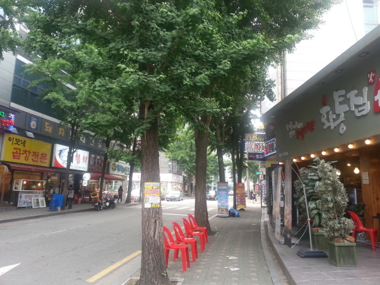 ÀÌ ±æÀ» µû¶ó °È´Ùº¸¸é ³ë·¡¹æ°ú °¡¿äÁÖÁ¡, ·ë»ì·Õ µîÀ» ã±â°¡ ¾î·ÆÁö ¾Ê´Ù. ¶Ç °í±êÁý, °¢Á¾ ¼úÁý µî ÁÖÁ¡ÀÌ ¸¹¾Æ º¸ÀδÙ. ÇÑÆíÀ¸·Î´Â °í±Þ ¿ÀÇǽºÅÚÀÌ µé¾î¼¸é¼ °í±Þ½º·¯¿î À½½ÄÁ¡µéµµ ¼Ó¼Ó ÀÚ¸®¸¦ Àâ¾Æ°¡°í ÀÖ´Â »óȲÀÌ´Ù.