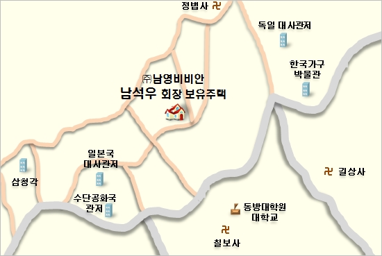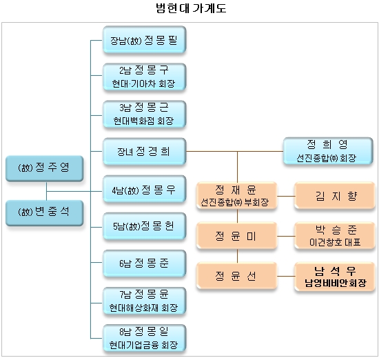 ÁßÀå³â ±âÈ¥³²¼ºµéÀº °ú°Å ¡®Ã³°«ÁýÀº ¸Ö¼ö·Ï ÁÁ´Ù¡¯°í ÇßÁö¸¸ ¿äÁîÀ½ 20~30 ±âÈ¥³²¼ºµéÀº ¡®°¡±î¿ï¼ö·Ï ÁÁ´Ù¡¯´Â ¸¶Àεå·Î ¹Ù²î¾ú´Ù. ³²¼®¿ì (ÁÖ)³²¿µºñºñ¾È ȸÀåÀº Çö´ë±×·ìÀÇ Ã¢¾÷ÁÖÀÎ °í Á¤ÁÖ¿µ ȸÀåÀÇ ¼ÕÁÖ »çÀ§´Ù. ³² ȸÀåÀÇ ¹è¿ìÀÚ´Â °í Á¤ÁÖ¿µÀ» Áß½ÉÀ¸·Î ÇÑ ¹üÇö´ë°¡ÀÇ Àå³à Á¤°æÈñ¾¾ÀÇ 1³²2³à Áß µÑ° µþÀÎ Á¤À±¼±¾¾´Ù. ¹üÇö´ë°¡¸¦ ó°¡·Î µÐ ³²¼®¿ì ȸÀåÀº Áö³ 2003³â ÀÛÀº ¾î¸Ó´ÏÀÎ ÇöÁ¤Àº Çö´ë±×·ì ȸÀåÀÇ ÁÖÅÿ¡¼ ºÒ°ú ¾à 200¹ÌÅÍ °¡·® ¶³¾îÁø ÀαÙÁÖÅÃÀ» ¸ÅÀÔÇß´Ù. ¹üÇö´ë°¡ °¡Á·µéÀÌ ¿Ë±âÁ¾±â ¸ð¿© »ç´Â ¼ººÏµ¿ 330¹øÁö ÀÏ´ë Áß 330-xxx¹øÁö¿¡ À§Ä¡ÇÑ ÀÌ ÁÖÅÃÀº ¾à 200Æò ±Ô¸ð·Î 40¾ï¿øÀÇ °¡Ä¡¸¦ °®°í ÀÖ´Ù´Â °ÍÀÌ Àα٠ºÎµ¿»êÀÇ ¼³¸íÀÌ´Ù. ¹üÇö´ë°¡ ÀÎôµéÀº ¿À·§µ¿¾È ¡®¼ººÏµ¿ °¡Á·¾Ö¡¯°¡ ³²´Ù¸¥ °ÍÀ¸·Î Àç°è Àλçµé »çÀÌ¿¡¼ ¼Ò¹®ÀÌ ³µ´Ù. ÀÌ´Â °í Á¤ÁÖ¿µ ȸÀåÀÇ ¿µÇâÀ» ¹ÞÀº °ÍÀ¸·Î ¾Ë·ÁÁö°í ÀÖ´Ù. ÀÌó·³ ¡®·Î¾âÆÐ¹Ð¸®¡¯ÀÎ ¹üÇö´ë°¡¸¦ ó°¡·Î µÎ°í ó°«Áý µ¿³×¿¡ ÁÖÅÃÀ» º¸À¯ÇÑ ³² ȸÀåÀº ´ëÇѹα¹ ¼Ó¿Ê¾÷°èÀÇ »ê ¿ª»çÀÌÀÚ »ê ÁõÀÎ ±â¾÷À¸·Î Æò°¡¹Þ´Â (ÁÖ)³²¿µºñºñ¾ÈÀ» °æ¿µÇϰí ÀÖ´Ù. (ÁÖ)³²¿µºñºñ¾ÈÀº â¾÷ÁÖÀÌÀÚ ³² ȸÀåÀÇ ¾Æ¹öÁöÀÎ ³²»ó¼ö ¸í¿¹È¸ÀåÀÌ ¼³¸³ÇÑ È¸»ç´Ù. ÀÌ È¸»ç´Â Ãʱâ Á÷¹°°øÀåÀ¸·Î ½ÃÀÛÇØ 60³â´ë ¼Ó¿Ê¾÷°è¿¡ ÁøÃâ, ÀÌÈÄ ¿¬ÀÌ¾î ¼Ó¿Ê ºê·£µå¸¦ ´ëÈ÷Æ®½ÃŰ¸ç ½Â½ÂÀ屸Çß´Ù. ÇöÀç (ÁÖ)³²¿µºñºñ¾ÈÀº ³²¼®¿ì ȸÀå°ú ±×ÀÇ °¡Á·µéÀÌ Àüü ÁöºÐÀÇ ¾à 75% °¡·®À» º¸À¯Çϰí ÀÖ¾î °¡Á·±â¾÷ÀÇ ÇüÅ´Ù. ½ºÄ«À̵¥Àϸ®°¡ ¹üÇö´ë°¡ Ÿ¿î ³»¿¡ ÁÖÅÃÀ» ¼ÒÀ¯ÇÑ ³²¼®¿ì (ÁÖ)³²¿µºñºñ¾È ȸÀåÀÇ ¼ººÏµ¿ ÀúÅðú ¼Ó¿Ê ´ëÇ¥±â¾÷ÀÇ ¼ºÀå È÷½ºÅ丮 µîÀ» ÃëÀçÇß´Ù.