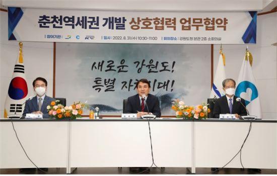 °¿øµµ¿Í Ãáõ½Ã¡¤±¹°¡Ã¶µµ°ø´ÜÀº 8¿ù31ÀÏ °¿øµµÃ» ȸÀǽǿ¡¼ ±èÁøÅ °¿øµµÁö»ç¡¤À°µ¿ÇÑ Ãáõ½ÃÀ塤±èÇÑ¿µ ±¹°¡Ã¶µµ°ø´Ü ÀÌ»çÀå°ú Ç㿵 ±¹È¸ÀÇ¿øÀÌ Âü¼®ÇÑ °¡¿îµ¥ Ãáõ¿ª¼¼±Ç °³¹ß»ç¾÷ ÃßÁøÀ» À§ÇÑ ±â°ü°£ »óÈ£Çù·Â ¾÷¹«Çù¾àÀ» ü°áÇß´Ù.