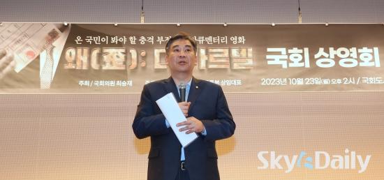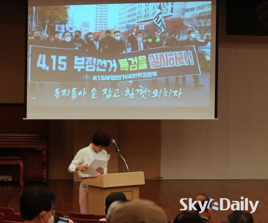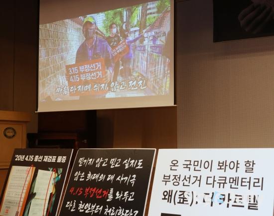 ¡ã 23ÀÏ ¼¿ï ¿©Àǵµ ±¹È¸µµ¼°ü ´ë°´ç¿¡¼ ¿¸° ºÎÁ¤¼±°Å °í¹ß ´ÙÅ¥¸àÅ͸® ¿µÈ ¡®¿Ö:´õ Ä«¸£ÅÚ¡¯ »ó¿µÈ¸¿¡¼ ¿µÈ »ó¿µÀ» ÁÖÃÖÇÑ ÃÖ½ÂÀç ±¹¹ÎÀÇÈû ÀÇ¿øÀÌ Àλ縻À» Çϰí ÀÖ´Ù. ÃÖ ÀÇ¿øÀº Àλ縻¿¡¼ ¡°´ëÇѹα¹ÀÇ Á¸Àç ÀÌÀ¯¸¦ ã±â À§ÇØ ÀÌ °Å´ëÇÑ ºÎÁ¤ Ä«¸£ÅÚÀ» °ú°¨ÇÏ°Ô ÃÄ ºÎ½¤¾ß ÇÑ´Ù¡± °í ¸»Çß´Ù. ¡®ÙþÁ¤ºÎ¡¯ ¶§ ¿Ü¸é µÆ´ø 4¡¤15ºÎÁ¤¼±°Å Á¶ÀÛ »ç°ÇÀ» ´Ù·é À̳¯ »ó¿µÈ¸¿¡´Â ÆòÀÏÀÓ¿¡µµ ºÒ±¸Çϰí Àü Á¼®ÀÌ ¸¸¼®ÀÌ µÅ ¶ß°Å¿î ¹ÝÀÀÀ» º¸¿´´Ù. ¹Ú¹Ì³ª ¼±ÀÓ±âÀÚ ¨Ï½ºÄ«À̵¥Àϸ®