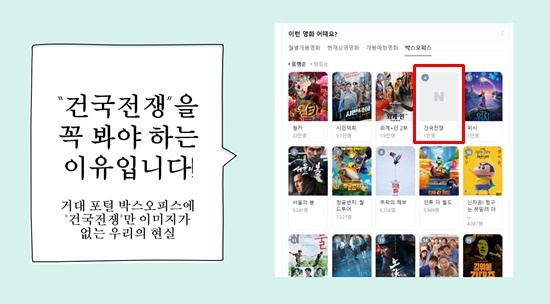 ¡®°Ç±¹ ´ëÅë·É À̽¸¸¡¯À» ±×¸° ¿µÈ ¡®°Ç±¹ÀüÀÀÌ ¾ç´ë Æ÷ÅÐ »çÀÌÆ® ³×À̹ö¡¤´ÙÀ½¿¡¼ Æ÷½ºÅÍ ³ëÃâÀÌ µÇÁö ¾Ê°í ÀÖ´Ù. ÇØ´ç ¿µÈ ¿¬ÃâÇÑ ±è´ö¿µ °¨µ¶Àº ¡°·©Å· 4À§(4ÀÏ ±âÁØ) ÇÏ´Â ¿µÈ°¡ Æ÷Åп¡¼ Æ÷½ºÅÍÁ¶Â÷ ³ëÃâÇÏÁö ¸øÇÏ´Â ºÒ°øÁ¤ »çȸ¡±¶ó°í Àϰ¥Çß´Ù.