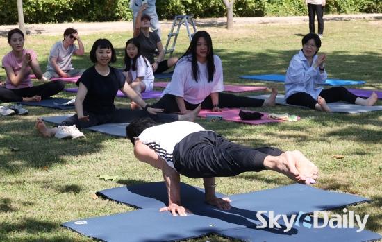 ¡ã ¿ä°¡ÀÇ ¸íÀÎ ¡®¿ä±â ´Ù´Ï¿¤¡¯°ú ÇÔ²² ÇÏ´Â ¡®ÆÄÅ©Èú¸µ¿ä°¡¡¯ ¿øµ¥ÀÌŬ·¡½º°¡ 2ÀÏ ¿ë»ê°¡Á·°ø¿ø Àܵð±¤Àå¿¡¼ ¿¸° °¡¿îµ¥ Âü°¡ÀÚµéÀÌ ¿ä°¡ µ¿ÀÛÀ» µû¶óÇϰí ÀÖ´Ù. ¡®¿ä±â ´Ù´Ï¿¤(YOGI DANIEL)¡¯ ¹Ú»ç´Â Çѱ¹ ÃÖÃÊ·Î ¿ä°¡¸¦ Àü¼öÇÑ ¿ä°¡ÀÎÀ¸·Î ¡®¿ä±â ´Ù´Ï¿¤¡¯°ú ÇÔ²²ÇÏ´Â À̹ø ÇÁ·Î±×·¥Àº ¿ä°¡ Ãʺ¸ÀÚ¿Í ÀÔ¹®ÀÚ¸¦ À§ÇÑ ±âÃÊ ¿ä°¡ ÇÁ·Î±×·¥À¸·Î Áغñ¿îµ¿°ú ÇÔ²² ¿ä°¡ ¼ö·Ã¿¡ ÇÊ¿äÇÑ È£Èí°ú ¸í»ó¡¤¿ä°¡ ÀÚ¼¼¡¤ ¿ä°¡ ¹°¸®Ä¡·á µî ´Ù¾çÇÑ ¼¼¼ÇÀ¸·Î ±¸¼ºÇÏ¿© ÁøÇàµÆ´Ù. ¹Ú¹Ì³ª ¼±ÀÓ±âÀÚ ¨Ï½ºÄ«À̵¥Àϸ®