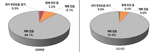 ÀÌ´Â 2008³â µ¿ÀÏÇÑ Á¶»ç ´ç½Ã 11.3%°¡ »óÀå°èȹÀÌ Àְųª ÃßÁø ÁßÀ̶ó°í ´äÇÑ °Í°ú ºñ±³ÇßÀ» ¶§º¸´Ùµµ ÀúÁ¶ÇÑ ¸ð½ÀÀ» º¸¿´´Ù.