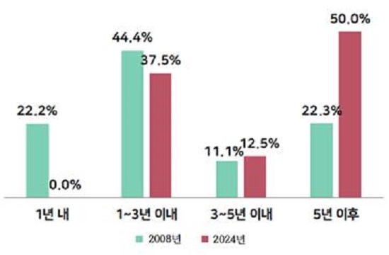 2008³â Á¶»ç¿¡ µû¸£¸é 3³â À̳»(66.6%)¶ó´Â ÀÀ´äÀÌ °¡Àå ¸¹¾Ò´ø °Í°ú ºñ±³Çϸé Áö¿ª¿¡ º»°ÝÀûÀÎ »óÀåÁغñ¿¡ µ¹ÀÔÇÑ ±â¾÷ÀÌ ¸¹Áö ¾Ê´Ù´Â °ÍÀ» ÀǹÌÇÑ´Ù.