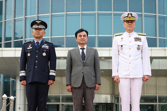 Á¦44¡¤45´ë ÇÕµ¿Âü¸ðÀÇÀå ÀÌ¡¤ÃëÀÓ½ÄÀÌ 30ÀÏ ¿ÀÈÄ ¼¿ï ¿ë»ê ÇÕÂü ¿¬º´Àå¿¡¼ °ÅÇàµÆ´Ù. ÀÌ ÀÚ¸®¿¡´Â ¾È±Ô¹é ±¹¹æºÎ Àå°üÀ» ºñ·ÔÇÑ ÇÑ¹Ì ±º ÁÖ¿ä Àλç¿Í À庴µéÀÌ Âü¼®ÇØ ±è¸í¼ö ÀüÀÓ ÇÕÂüÀÇÀåÀÇ ÀÌÀÓ°ú Àü¿ª, Áø¿µ½Â ½ÅÀÓ ÇÕÂüÀÇÀåÀÇ ÃëÀÓÀ» ÇÔ²² ÁöÄѺôÙ.