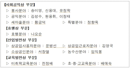 ¼ö»óÀÚ ¼±Á¤Àº Áö¿ª»çȸ ¹ßÀü°ú °ÇÀüÇÑ »çȸ ºÐÀ§±â Á¶¼º¿¡ Å©°Ô ±â¿©ÇÑ ½Ã¹Î¿¡°Ô¸¸ ¼ö¿©ÇÑ´Ù. ¿ÃÇØ´Â ÃÑ 44¸íÀÇ Èĺ¸ÀÚ°¡ Á¢¼öµÆ´Ù.