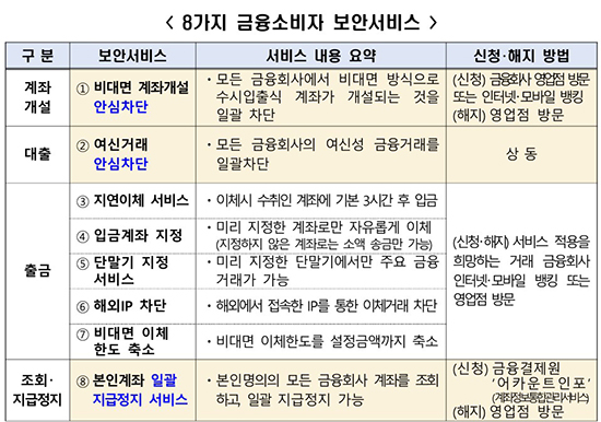 º¸À̽ºÇǽ̰ú ¸íÀǵµ¿ë µî ºñ´ë¸é ±ÝÀ¶»ç±â ÇÇÇØ°¡ È®»êµÇ´Â °¡¿îµ¥, ±ÝÀ¶´ç±¹ÀÌ ±ÝÀ¶¼ÒºñÀÚ°¡ Á÷Á¢ ½ÅûÇÒ ¼ö ÀÖ´Â º¸¾È¼ºñ½º 8°¡Áö¸¦ ¼Ò°³Çß´Ù.