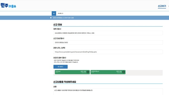 ÀÌÁؼ® °³Çõ½Å´ç ´ëÇ¥´Â ´õºÒ¾î¹ÎÁÖ´çÀÇ ÇãÀ§Á¶ÀÛÁ¤º¸ Á¦º¸ ±â±¸ÀÎ ¹ÎÁÖÆÄÃâ¼Ò¿¡ °À¯Á¤ ´ëÅë·É½Ç ´ëº¯ÀÎÀÇ Áï°¢ °æÁúÀ» ¿ä±¸ÇÏ´Â ½Å°í¼¸¦ Á¦ÃâÇß´Ù.