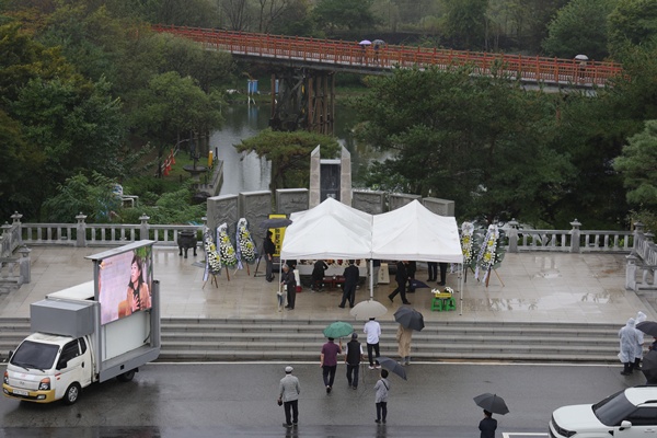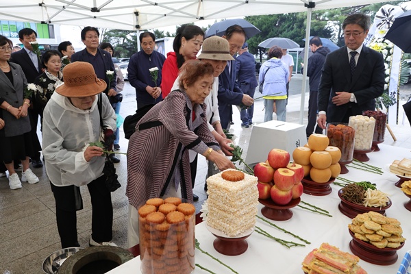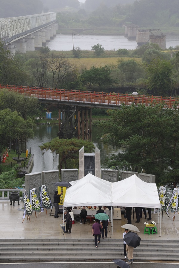 ¡ã Ãß¼®ÀÎ 6ÀÏ ¿ÀÀü °æ±âµµ ÆÄÁֽà ÀÓÁø°¢ ¸Á¹è´Ü¿¡¼ ½ÇÇâ¹Î °¡Á·ÀÌ Â÷·Ê¸¦ Áö³»°í ÀÖ´Ù. ¸Á¹è´ÜÀº À̻갡Á·°ú ½ÇÇâ¹ÎµéÀÌ °íÇâÀ» ±×¸®¿öÇϸç Á¦»ç³ª Â÷·Ê¸¦ Áö³»´Â Á¦´Ü(ð®Ó¦) ¶Ç´Â ±â³äºñ´Ù. ÀÓÁø°¢ ¸Á¹è´ÜÀº 1985³â 9¿ù Á¶¼ºµÅ ¸Å³â ¸íÀý¸¶´Ù ½ÇÇâ¹ÎµéÀÌ °íÇâÀ» ÇâÇØ Á¦»ç¸¦ ¿Ã¸®´Â Àå¼Ò·Î Ȱ¿ëµÇ°í ÀÖ´Ù. ¿¬ÇÕ´º½º