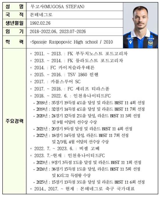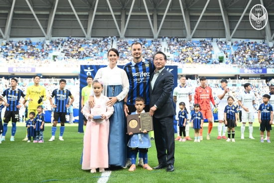 ÀÎõ±¤¿ª½Ã°¡ 8ÀÏ ¼ö¿ø »ï¼ºÀü °æ±â¿¡ ¾Õ¼ ÀÎõÀ¯³ªÀÌÆ¼µå FCÀÇ ÇÙ½É °ø°Ý¼öÀÌÀÚ ½Ã¹ÎµéÀÇ Å« »ç¶ûÀ» ¹Þ¾Æ¿Â ½ºÅ×ÆÇ ¹«°í»ç ¼±¼ö¿¡°Ô ¡®ÀÎõ ¸í¿¹½Ã¹ÎÁõ¡¯À» ¼ö¿©Çß´Ù°í 10ÀÏ ¹àÇû´Ù.