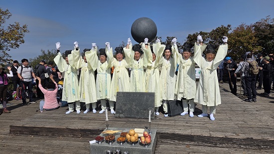 Âü°¡ÀÚµéÀº Çà»çÀå¿¡ ¼¼¿öÁø °ÅºÏ°ú ¿ë¡¤°ËÀº ¿©ÀÇÁÖ°¡ »ó¡µÈ ±â³äž ¾Æ·¡¿¡¼ ±â¿øÁ¦¸¦ Áö³»°í °¢ Áö¿ªÀÇ ¹®È¿Í Çö¾ÈÀ» °øÀ¯Çϸç ÈÇÕ°ú ±³·ùÀÇ Àǹ̸¦ µÇ»õ°å´Ù.