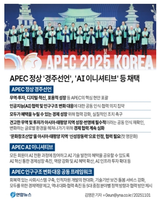 °æºÏ °æÁÖ°¡ ¡®¼¼°è ¿Ü±³ÀÇ Á߽ɡ¯À¸·Î º¯¸ðÇß´Ù. µµ³Îµå Æ®·³ÇÁ ¹Ì±¹ ´ëÅë·É°ú ½ÃÁøÇÎ Áß±¹ ±¹°¡ÁÖ¼®, ´ÙÄ«ÀÌÄ¡ »ç³ª¿¡ ÀϺ» ÃѸ®, ·Î·±½º ¿ý ½Ì°¡Æ÷¸£ ÃѸ® µî ÁÖ¿ä±¹ Á¤»óµéÀÌ ÇÑÀÚ¸®¿¡ ¸ðÀÎ 2025 ¾Æ½Ã¾ÆÅÂÆò¾ç°æÁ¦Çù·Âü(APEC) Á¤»óȸÀÇ´Â ´Ü¼øÇÑ È¸Àǰ¡ ¾Æ´Ï¶ó, »õ·Î¿î ±¹Á¦Áú¼ ¼Ó Çѱ¹ ¿Ü±³ÀÇ ½ÃÇèÀåÀ̾ú´Ù. ÀÌÀç¸í ´ëÅë·É¿¡°Ô À̹ø ȸÀÇ´Â ÃëÀÓ ÀÌÈÄ ÃÖ´ë ¿Ü±³ ¹«´ëÀÌÀÚ ÇÑ¡¤¹Ì °ü¼¼Çù»ó,ÇÙÃßÁøÀá¼öÇÔ µµÀÔ,AI(ÀΰøÁö´É) Çù·Â,¹®È»ê¾÷ È®»ê µî ´ÙÃþÀû Çö¾ÈÀ» Ç®¾î³»¾ß ÇÏ´Â ¡®Á¾Çտܱ³Àü¡¯À̾ú´Ù.