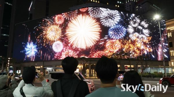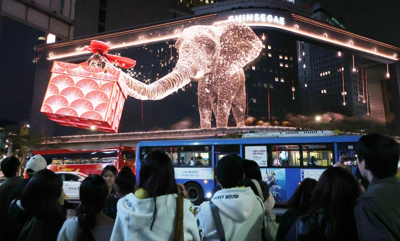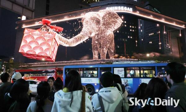 ¡ã 9ÀÏ ¿ÀÈÄ ¼­¿ï Áß±¸ ½Å¼¼°è¹éÈ­Á¡ º»Á¡ ¿Ü°ü¿¡ ¼³Ä¡µÈ ¡®½Å¼¼°è ½ºÄù¾î¡¯ Àü±¤ÆÇ¿¡ ¡®½Ã°£À» ÀÕ´Â ¸¶¹ýÀÇ ¼¼°è¡¯ ¶ó´Â ÁÖÁ¦·Î Å©¸®½º¸¶½º ¹Ìµð¾î¾ÆÆ®°¡ ¼ÛÃâµÇ°í ÀÖ´Ù. 3ºÐ °¡·® ¼±º¸ÀÌ´Â ÀÌ ¿µ»óÀº ¸ÅÀÏ ¿ÀÈÄ 5½ÃºÎÅÍ ÀÚÁ¤±îÁö º¼ ¼ö ÀÖ´Ù. ¹Ú¹Ì³ª ±âÀÚ ¨Ï½ºÄ«À̵¥Àϸ®