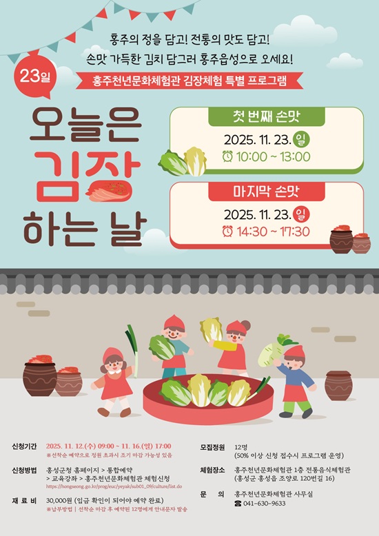 ÃæÃ»³²µµ È«¼º±º È«ÁÖõ³â¹®ÈüÇè°üÀÌ 23ÀÏ ¿ì¸® ¹ÎÁ·ÀÇ °íÀ¯ÇÑ Á¤¼¸¦ ´ãÀº ±èÄ¡¸¦ Á÷Á¢ ´ã±×¸ç ÀüÅëÀûÀÎ ±èÀå ¹®È¸¦ ¹è¿ì°í °æÇèÇÒ ±âȸ¸¦ Á¦°øÇϱâ À§ÇÑ ±èÀåüÇè Æ¯º°ÇÁ·Î±×·¥ ¡®¿À´ÃÀº ±èÀåÇÏ´Â ³¯¡¯À» ¿î¿µÇϸç Âü°¡ÀÚ¸¦ ¸ðÁýÇÑ´Ù°í ¹àÇû´Ù.