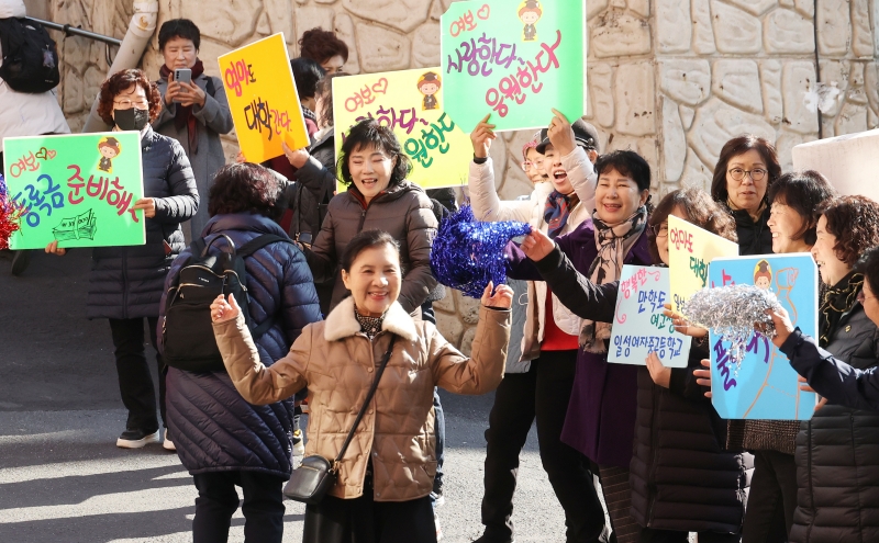 ¡ã 2026Çг⵵ ´ëÇмöÇдɷ½ÃÇèÀ» ÇÏ·ç ¾ÕµÐ 12ÀÏ ¼¿ï ¸¶Æ÷±¸ Àϼº¿©ÀÚÁß°íµîÇб³¿¡¼ ¼öÇè»ýµéÀÌ ÈĹèµéÀÇ ÀÀ¿øÀ» ¹Þ°í ÀÖ´Ù. À̳¯ ÀÌ Çб³ÀÇ °í1,2Çгâ ÇлýµéÀº ¿ÃÇØ ¼ö´É¿¡ ÀÀ½ÃÇÏ´Â ¼öÇè»ýµéÀ» ÀÀ¿øÇϱâ À§ÇØ ÇÇÄÏÀ» µé°í ¿¶í ÀÀ¿øÀüÀ» ÆîÃÆ´Ù. ¹Ú¹Ì³ª ±âÀÚ ¨Ï½ºÄ«À̵¥Àϸ®