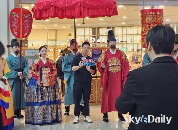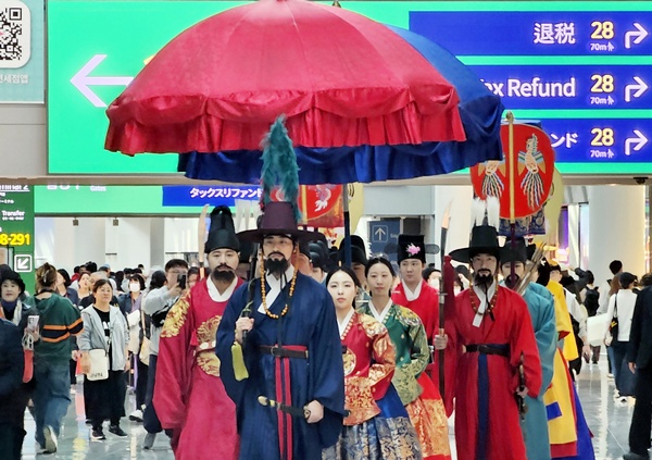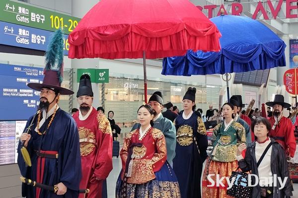 ¡ã ÀÎõ°øÇ× Á¦1 Å͹̳Π3Ãþ¿¡¼ 16ÀÏ ¡®¿Õ°¡ÀÇ »êÃ¥¡¯ ÆÛÆ÷¸Õ½º°¡ ÁøÇàµÇ°í ÀÖ´Ù. 2010³âºÎÅÍ ½ÃÇàµÈ ¿Õ°¡ÀÇ »êÃ¥Àº Á¶¼±½Ã´ë ¿Õ°ú ¿ÕºñÀÇ »êÃ¥À» ÀçÇöÇÑ °ÍÀ¸·Î ÇÏ·ç¿¡ ¼¼ Â÷·Ê Á¦1Å͹̳Π3Ãþ ¿©°´ µ¿¼±¿¡ µû¶ó ¿òÁ÷ÀδÙ. ÀÌÁ¾¿ø ±âÀÚ ¨Ï½ºÄ«À̵¥Àϸ®