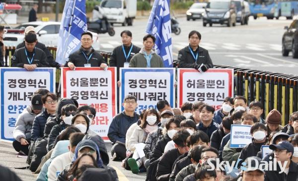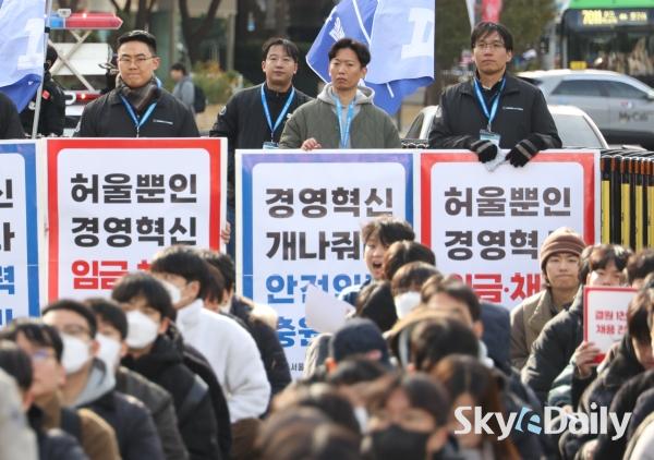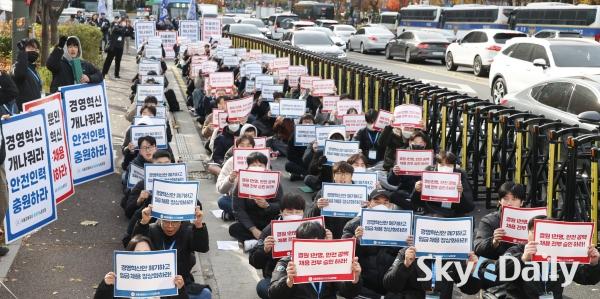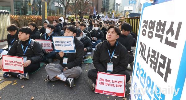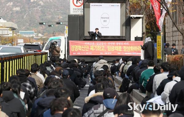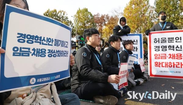 ¡ã À̸¥¹Ù ¡®MZ³ëÁ¶¡¯·Î ºÒ¸®´Â ¼¿ï±³Åë°ø»ç Á¦3³ëÁ¶ÀÎ ¿Ã¹Ù¸¥³ëµ¿Á¶ÇÕÀÌ 17ÀÏ ¿ÀÀü ½Ãû ¾Õ¿¡¼ ¡®2025 ÀÓ´ÜÇù ÀïÀÇÇàÀ§ ÃâÁ¤Áýȸ¡¯¸¦ ¿°í ÀÖ´Ù. À̵éÀº ¾Õ¼ ÀÔÀå¹®À» ³»°í ¡°2025³â ÇàÁ¤¾ÈÀüºÎ ÀÓ±Ý ÀÎ»ó °¡À̵å¶óÀÎ(3.0%) È®º¸¸¦ À§ÇÑ °¢Á¾ ½ÃÃ¥»ç¾÷ ÀÌÇàºÐ(Á¤Ã¥ ÀΰǺñ) º¸Àü, ÃæºÐÇÑ ¾ÈÀü Àη Ȯº¸¸¦ À§ÇÑ °¨Ãà ¾ø´Â ½Å±Ô Àη ä¿ë ½ÂÀÎÀ» ¼¿ï½Ã¿¡ °·ÂÈ÷ ¿ä±¸ÇÒ °èȹ¡± À̶ó°í ¹àÇû´Ù. ¹Ú¹Ì³ª ±âÀÚ ¨Ï½ºÄ«À̵¥Àϸ®