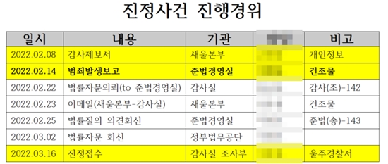 »ç°Ç ÁøÇà ¼Óµµ´Â ºñÁ¤»óÀûÀ̾ú´Ù. 2022³â °¨»çÁ¦º¸(2¿ù8ÀÏ) ¡æ ¹üÁ˹߻ýº¸°í(2¿ù14ÀÏ) ¡æ ¹ý·üÀÚ¹®(2¿ù22~25ÀÏ) ¡æ Á¤ºÎ¹ý¹«°ø´Ü Àǰß(3¿ù 2ÀÏ) ¡æ ¿ïÁÖ°æÂû¼ ÁøÁ¤(3¿ù 16ÀÏ) ºÒ°ú 37ÀÏ ¸¸¿¡ ¼ö»ç ÀÇ·Ú ÀýÂ÷°¡ ¿Ï°áµÆ´Ù. °ø°ø±â°ü¿¡¼ º¸±â ¾î·Á¿î ¼Óµµ´Ù.