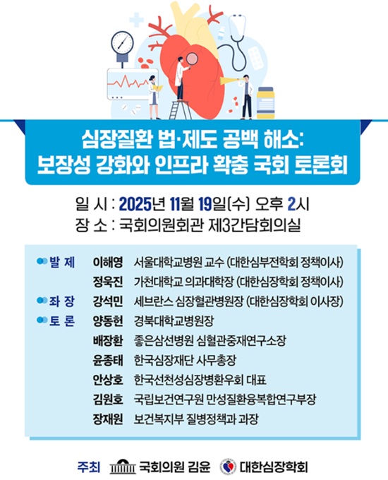 ±¹È¸ º¸°Çº¹ÁöÀ§¿øÈ¸ ±èÀ± ÀÇ¿øÀº 19ÀÏ ¿ÀÈÄ ±¹È¸ ÀÇ¿øÈ¸°ü Á¦ 3 °£´ãȸ½Ç¿¡¼ ´ëÇѽÉÀåÇÐȸ¿Í ÇÔ²² ¡®½ÉÀåÁúȯ ¹ý¡¤Á¦µµ °ø¹é ÇØ¼Ò-º¸À强 °È¿Í ÀÎÇÁ¶ó È®Ãæ ±¹È¸ Åä·Ðȸ¡¯¸¦ °³ÃÖÇÑ´Ù°í ¹àÇû´Ù.