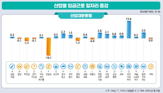 ¼ºº°·Î´Â ³²¼ºÀÇ ÀÏÀÚ¸®°¡ 6¸¸6000°³ ÁÙ¾ú°í ¿©¼ºÀº 17¸¸7000°³ ´Ã¾ú´Ù. ¿©¼º °í¿ë Áõ°¡´Â ÁÖ·Î º¸°Ç¡¤»çȸº¹Áö, Çùȸ¡¤¼ö¸®¡¤°³ÀÎ ¼ºñ½º¾÷, Àü¹®Á÷¿¡¼ ¹ß»ýÇß´Ù. ³²¼ºÀº °Ç¼³, Á¤º¸Åë½Å, Á¦Á¶¾÷ Áß½ÉÀ¸·Î °¨¼ÒÆøÀÌ ÄÇ´Ù.