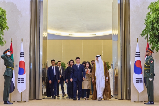 ¾Æ¶ø¿¡¹Ì¸®Æ®(UAE)¸¦ ±¹ºó ¹æ¹®ÇÑ ÀÌÀç¸í ´ëÅë·ÉÀÌ 17ÀÏ(ÇöÁö½Ã°£) ¡°Çѱ¹ÀÌ Áßµ¿¡¤¾ÆÇÁ¸®Ä«¡¤À¯·´À¸·Î ÁøÃâÇÏ´Â µ¥ UAE°¡ ¡®º£À̽ºÄ·ÇÁ¡¯ ¿ªÇÒÀ» ÇÒ °Í¡±À̶ó¸ç ¾ç±¹ °ü°è¸¦ ¡°°æÁ¦Àû °øµ¿Ã¼·Î ¹ßÀü½Ãų ½ÃÁ¡¡±À̶ó°í ¹àÇû´Ù. ÀÌ ´ëÅë·É ÃëÀÓ ÈÄ Ã¹ Ÿ±¹ ±¹ºó ¹æ¹®À¸·Î, UAE´Â À̹ø ¼ø¹æÀÇ Ã¹ ±âÂøÁö´Ù.