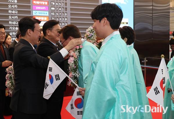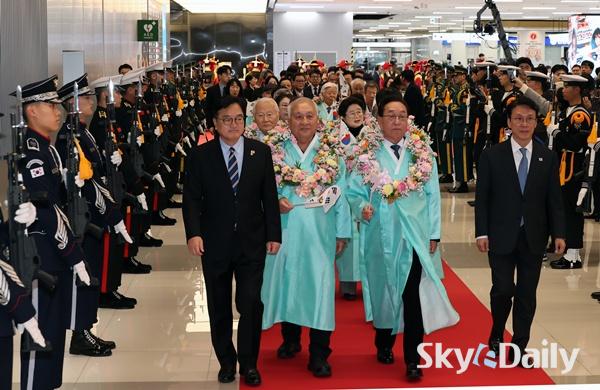 ¡ã ±è¹Î¼® ±¹¹«ÃѸ®¿Í ¿ì¿ø½Ä ±¹È¸ÀÇÀåÀÌ 23ÀÏ ¼¿ï °¼±¸ ±èÆ÷°øÇ× ±¹Á¦¼± û»ç ÀÔ±¹Àå¿¡¼ ¿¸° '´ëÇѹα¹ÀÓ½ÃÁ¤ºÎ ¿äÀΠȯ±¹ ÀçÇö' Çà»ç¿¡¼ ÀÓ½ÃÁ¤ºÎ ¿äÀÎ Èļհú µµ¿ÇÑ ÀÇÀå´ë¸¦ »ç¿Çϰí ÀÖ´Ù. ±¹°¡º¸Èƺδ ±¤º¹ 80³â°ú ÀÓ½ÃÁ¤ºÎ ¿äÀΠȯ±¹ÀÏÀ» ¸Â¾Æ À̳¯ ¿ÀÈÄ ¼¿ï ±èÆ÷°øÇ× ±¹Á¦¼±Ã»»ç ÀÔ±¹Àå¿¡¼ ÀÓ½ÃÁ¤ºÎ ¿äÀÎ À¯Á·°ú Á¤ºÎ ÁÖ¿ä Àλç, ±¤º¹È¸¿ø, Çлý µî 200¿©¸íÀÌ Âü¼®ÇÑ °¡¿îµ¥ ¡®´ëÇѹα¹ÀÓ½ÃÁ¤ºÎ ¿äÀΠȯ±¹ ÀçÇö Çà»ç¡¯¸¦ °³ÃÖÇß´Ù. Çà»ç´Â ÀÓ½ÃÁ¤ºÎ ¿äÀεéÀÌ C-47 ¼ö¼Û±â¸¦ Ÿ°í ȯ±¹Çß´ø ±èÆ÷°øÇ×(´ç½Ã ±èÆ÷ºñÇàÀå)¿¡¼ °³ÃÖ, ¼±¿µéÀÇ ¼þ°íÇÑ Çå½ÅÀ» ±â¾ïÇÏ°í ±¹¹Î¿¡°Ô ¿ª»çÀû Àǹ̸¦ ¾Ë¸®´Â Àǹ̷Π±âȹµÆ´Ù. ÀÌÁ¾¿ø ±âÀÚ ¨Ï½ºÄ«À̵¥Àϸ®