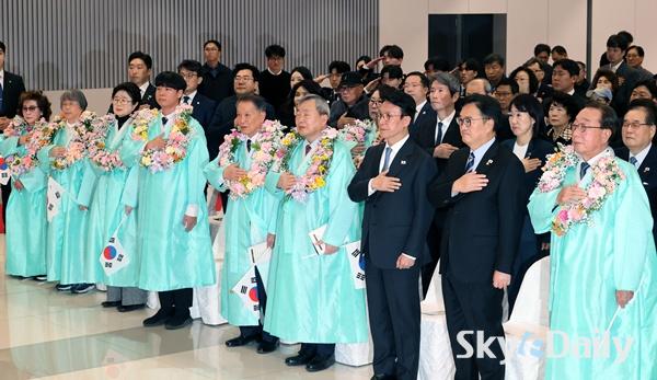 C-47 ¼ö¼Û±â¸¦ Ÿ°í ȯ±¹Çß´ø ±èÆ÷°øÇ×(´ç½Ã ±èÆ÷ºñÇàÀå)¿¡¼ °³ÃÖ, ¼±¿µéÀÇ ¼þ°íÇÑ Çå½ÅÀ» ±â¾ïÇÏ°í ±¹¹Î¿¡°Ô ¿ª»çÀû Àǹ̸¦ ¾Ë¸®´Â ÀǹÌ