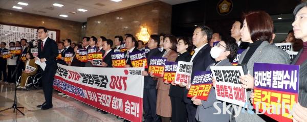 ¡ã À嵿Çõ ±¹¹ÎÀÇÈû ´ëÇ¥¿Í ¼Û¾ð¼® ¿ø³»´ëÇ¥¸¦ ºñ·ÔÇÑ ÀÇ¿øµéÀÌ 27ÀÏ ¼¿ï ¿©Àǵµ ±¹È¸ ·ÎÅÙ´õȦ¿¡¼ Ãß°æÈ£ ÀÇ¿ø¿¡ ´ëÇÑ Ã¼Æ÷µ¿ÀÇ¾È Ç¥°áÀ» °ÅºÎ, Ư°Ë ±Ôź´ëȸ¸¦ ¿°í ±¸È£¸¦ ¿ÜÄ¡°í ÀÖ´Ù. ¹Ú¹Ì³ª ±âÀÚ ¨Ï½ºÄ«À̵¥Àϸ®