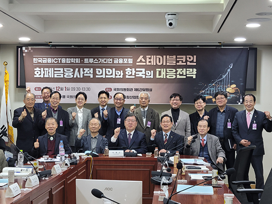 Çѱ¹±ÝÀ¶ICTÀ¶ÇÕÇÐȸ´Â Æ®·ç½º°¡µð¾ð°ú ÇÔ²² 1ÀÏ ¿ÀÀü ¼¿ï ¿©Àǵµ ±¹È¸ÀÇ¿øÈ¸°ü Á¦6°£´ãȸ½Ç¿¡¼ '½ºÅ×À̺íÄÚÀÎÀÇ ÈÆó±ÝÀ¶»çÀû ÀÇÀÇ¿Í Çѱ¹ÀÇ ´ëÀÀÀü·«À» ÁÖÁ¦·Î Æ÷·³À» °³ÃÖÇß´Ù.